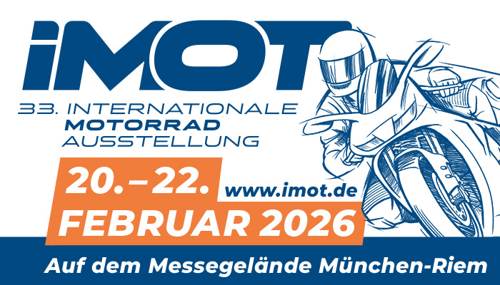 Von 20. bis 22. Februar 2026 findet die Internationale Motorradausstellung IMOT wieder auf dem Gelände der Messe München in Riem statt!